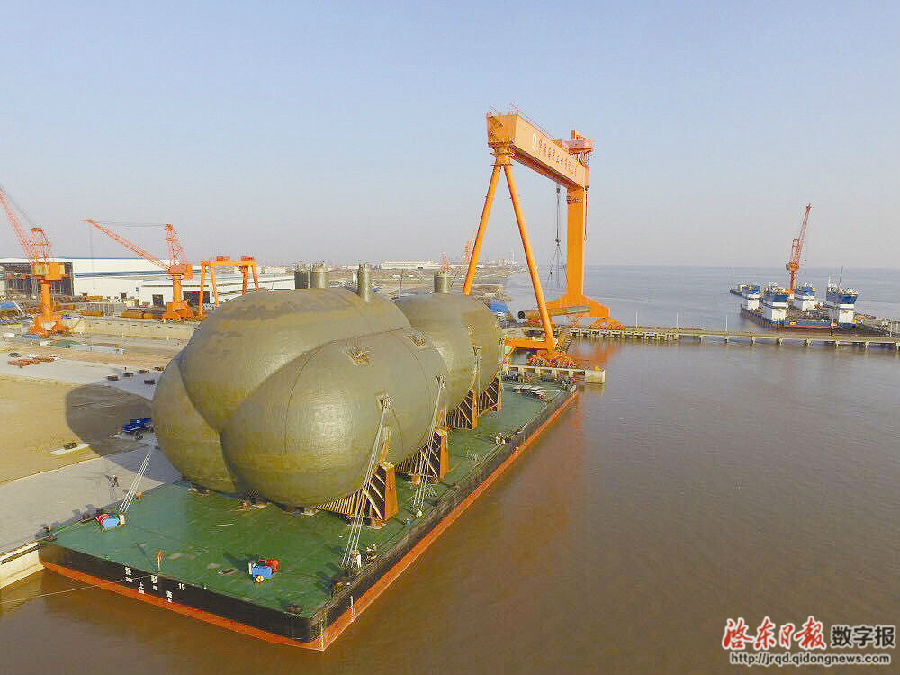 由华滋海工建造的85000立方超大型乙烷、乙烯液罐,是世界最大的C型船用液罐,用于配套全球首制的85000m3超大型乙烷、乙烯船。